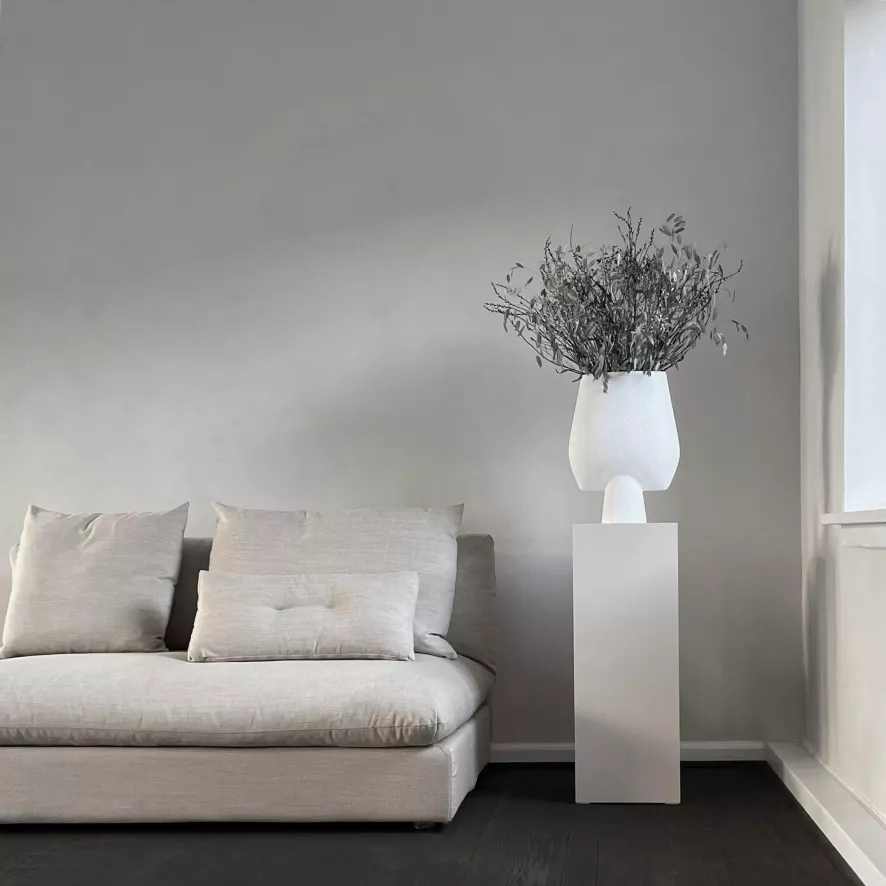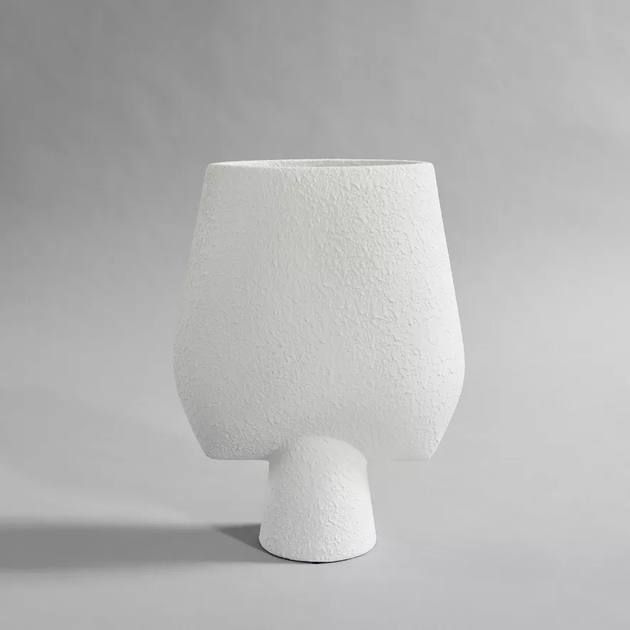 Deze Sphere Square Big vaas van 101Copenhagen is gemaakt van keramiek en wordt inclusief plastic zakje geleverd zodat je deze met water kunt vullen. De vaas heeft een hoogte van 43 centimeter, een breedte van 16 centimeter en een lengte van 33 centimeter. De vazen zijn ontwikkeld in nauwe samenwerking met keramisten, waardoor er een precies contrast tussen gladde vormen en scherpe randen wordt gewaarborgd. Doordat deze collectie met de hand is geglazuurd kunnen er lichte variaties in kleur zijn. De vaas is beschikbaar in meerdere kleuren en maten. Je kunt de vaas schoonmaken met een zachte droge doek.