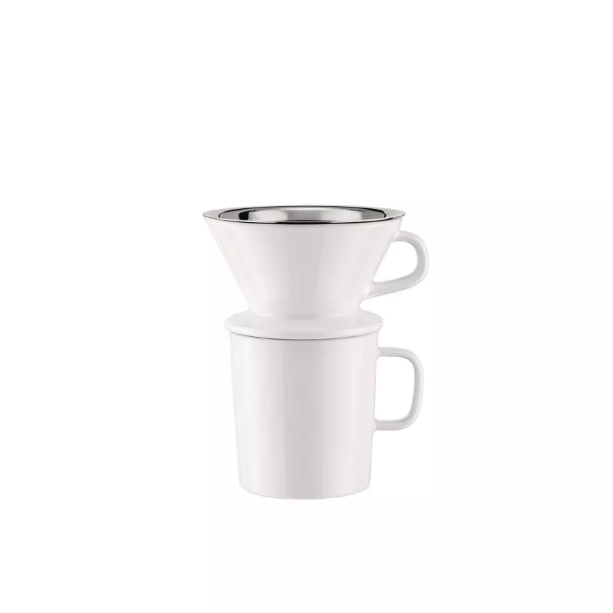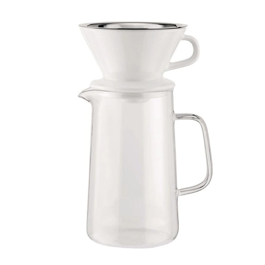 De Slow Coffee koffiemaker van Alessi is ontworpen door Keiji Takeuchi. De koffiemaker is gemaakt van hitte bestendig glas, porselein en roestvrijstaal.