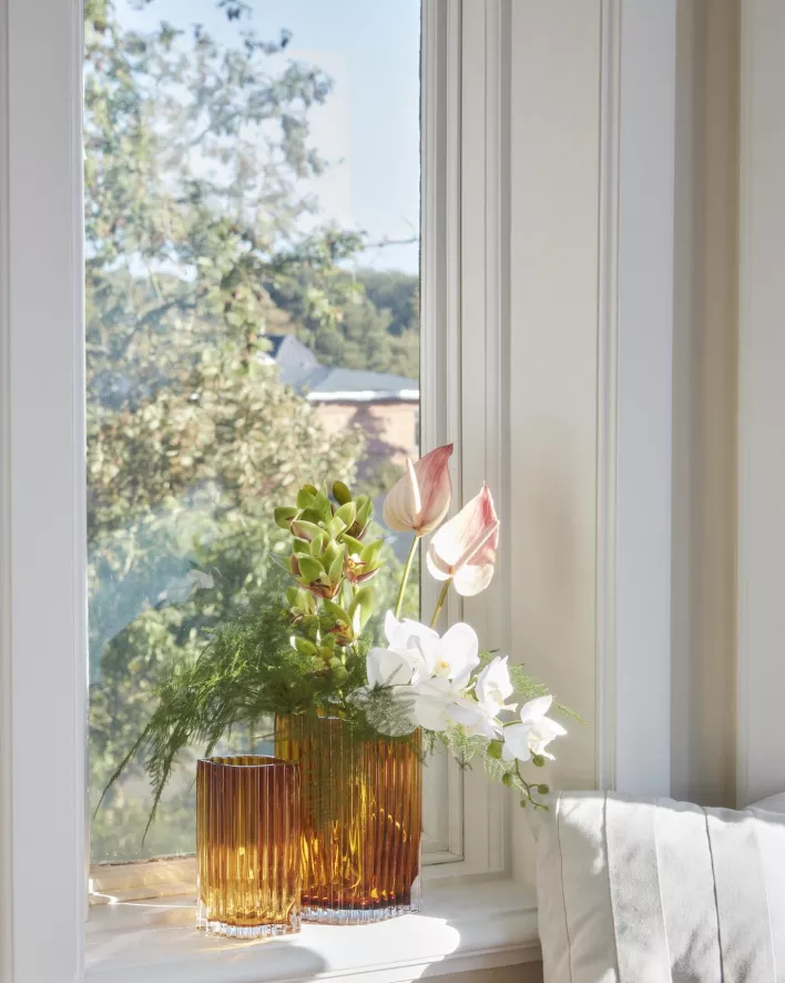 De Folium vaas large van AYTM is 18 centimeter lang, 11,7 centimeter breed en 25 centimeter hoog. Het is een glazen vaas en is te verkrijgen in verschillende uitvoeringen.