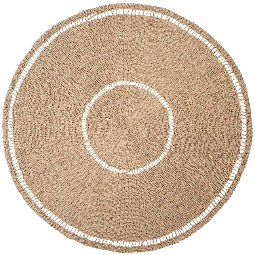 Het Anina vloerkleed van Broste Copenhagen heeft een diameter van 120 centimeter. Het kleed is gemaakt van zeegras en is verkrijgbaar in verschillende kleurvariaties. Het kleed is met de hand geweven.