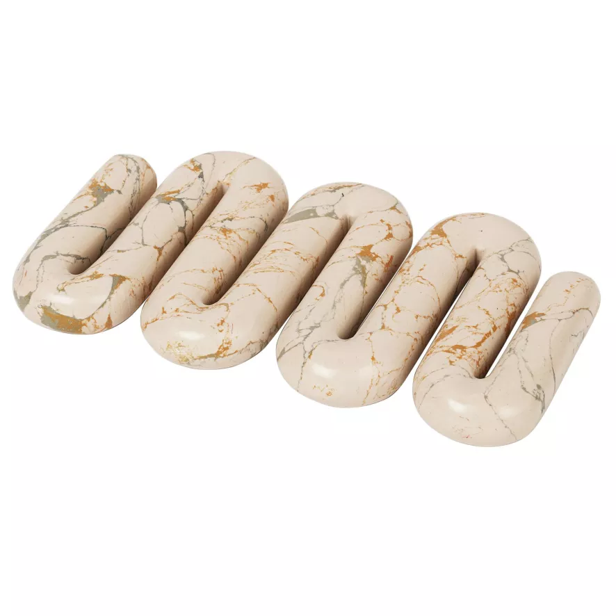 De Orla onderzetter medium van Broste Copenhagen heeft een lengte van 25 centimeter, een breedte van 14 centimeter en een hoogte van 2,5 centimeter. De onderzetter is gemaakt van composiet marmer, is verkrijgbaar in verschillende (kleur)variaties en wordt geleverd per stuk.