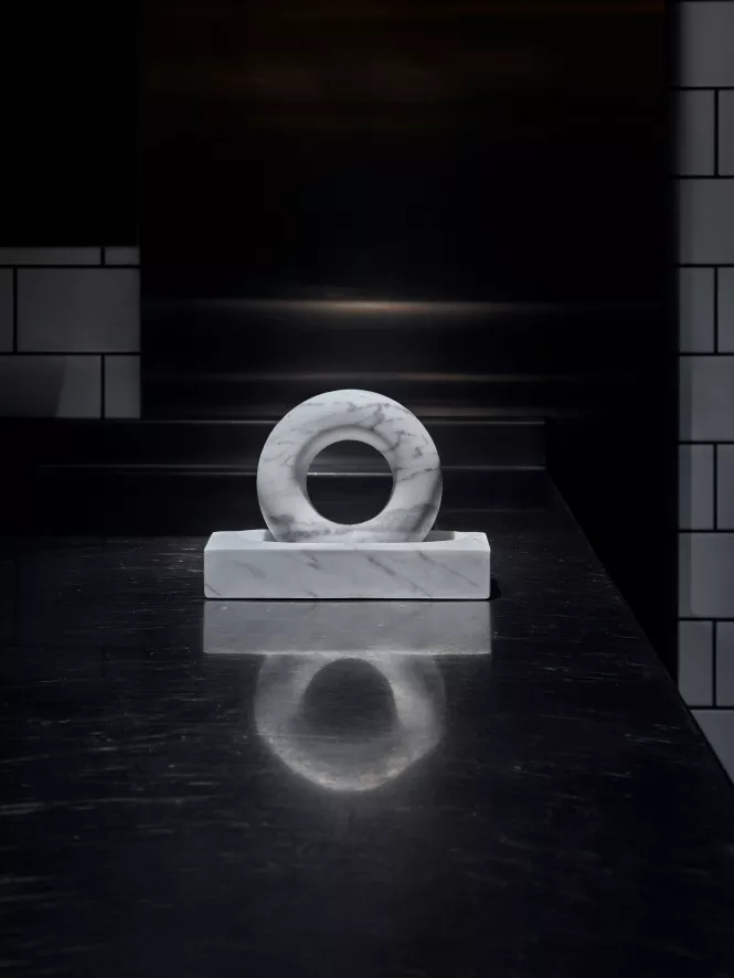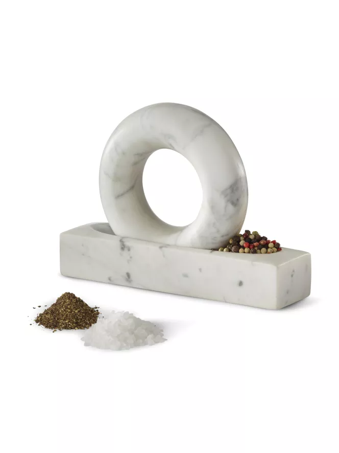 De Tondo vijzel van Design House Stockholm is gemaakt van marmer. De ring heeft een diameter van 14 centimeter en is 3,8 centimeter dik. Het bakje van de vijzel is 21 centimeter lang, 5,6 centimeter breed en 3,8 centimeter hoog. Maak de vijzel alleen met de hand schoon.