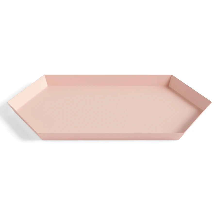 Het Kaleido dienblad van Hay is beschikbaar in vijf maten en twaalf kleuren. De medium versie heeft een lengte van 33,5 centimeter en een breedte van 19,5 centimeter. De dienbladen zijn gemaakt van gepoedercoat staal. Zie ook de x-small, de small, de large en de x-large.