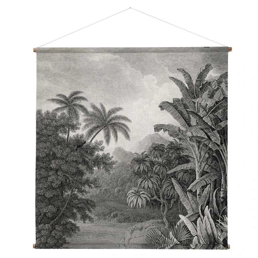 De wanddecoratie of wandkleed Jungle XXL van HK Living is 154 centimeter breed en 154 centimeter lang. Het houten frame is 2 centimeter dik. Het HKliving wandkleed zelf is gemaakt van geprint katoen.