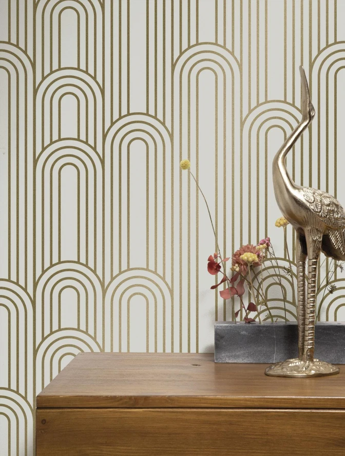 Het Golden Lines behang V van Kek Amsterdam is een vliesbehang van premiumkwaliteit. Het behang heeft een dikte van 260 grams en heeft een voelbare, satijnen structuur met een lichte korrel. Het behang heeft een goud, metallic, grafisch patroon en is met behulp van de Perfax Ready & Roll voor vliesbehang eenvoudig aan te brengen. Het behang heeft een breedte van 100 centimeter en een lengte van 280 centimeter dat over twee banen verspreid is. Iedere baan heeft daarmee een breedte van 50 centimeter en een lengte van 280 centimeter. Je kunt hiermee per rol 2,8m2 behangen. Het Golden Lines behang V van Kek Amsterdam is in verschillende kleuren en patronen verkrijgbaar.