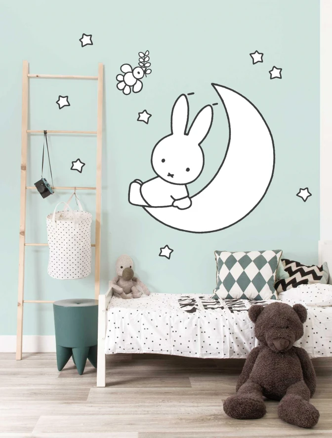 De Nijntje muursticker II van KEK Amsterdam is geïllustreerd door Dick Bruna. De sticker is 95 centimeter breed en 97 centimeter hoog. De muursticker bestaat uit 9 verschillende stickers en is gemaakt van kwalitatief vinylfolie en heeft een matte uitstraling. Het folie is zo dun dat je nauwelijks hoogteverschil op de muur ziet. Daarnaast heeft de tekening geen witte of transparante rand waardoor deze ook geschikt is voor gekleurde muren. De muursticker is waterbestendig en kan eenvoudig schoongemaakt worden met een vochtige doek. De muursticker kan overal opgeplakt worden, zolang de ondergrond maar hard en vlak is. Bij bestelling ontvang je een duidelijke gebruiksaanwijzing.