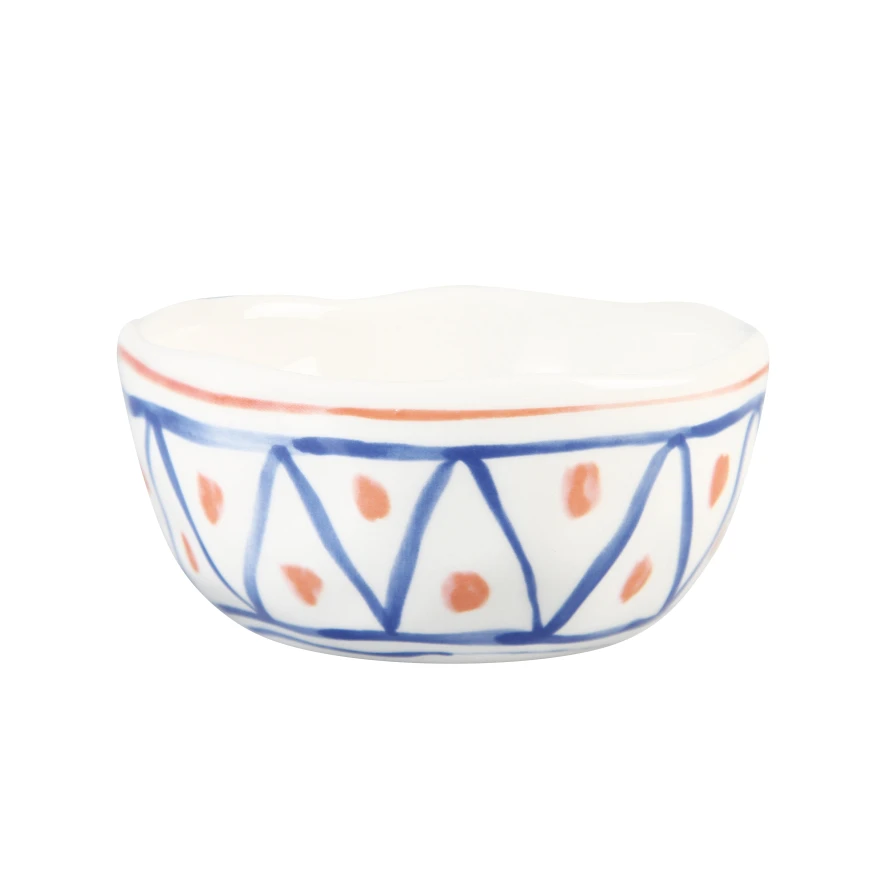 De Lemon Moroccan kom Ø11 set van 4 van &Klevering bestaat uit verschillende kommen met elk een diameter van 10,5 centimeter, een hoogte van 5 centimeter en een inhoud van 0,15 liter. De schalen zijn gemaakt van keramiek en hebben een blauwe met oranje kleurmotief erop geschilderd. De Lemon Moroccan kommen zijn vaatwasser bestendig, maar kunnen niet in de magnetron worden gebruikt.
