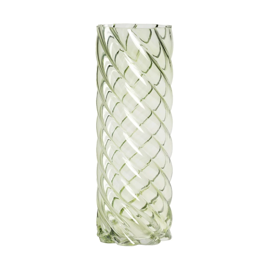De Marshmallow vaas groen van &klevering heeft een diameter van 12 centimeter en een hoogte van 33 centimeter. De vaas is gemaakt van glas en heeft een gedraaid ribbeleffect. Je kunt de vaas schoonmaken door hem te spoelen met lauwwarm water.