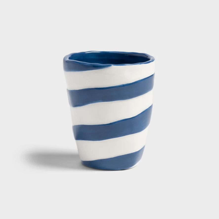 De Oblique mok 0,25L set van 4 van &Klevering bestaat uit gestreepte mokken met elk een andere kleur. Elke mok heeft een diameter van 8 centimeter en een hoogte van 10 centimeter. De bekers zijn gemaakt van dolomiet en zijn vaatwasser bestendig.