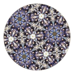 Het Festival Midnight vloerkleed van Moooi Carpets heeft een diameter van 250 centimeter. Het is een getuft tapijt van 100% polyamide en het valt in de gebruiksklasse CL33, wat betekent dat het geschikt is voor zwaar contact en geluid goed absorbeert. De kleur is er digitaal op geprint met een chromojet en het tapijt heeft een achterkant van vilt.