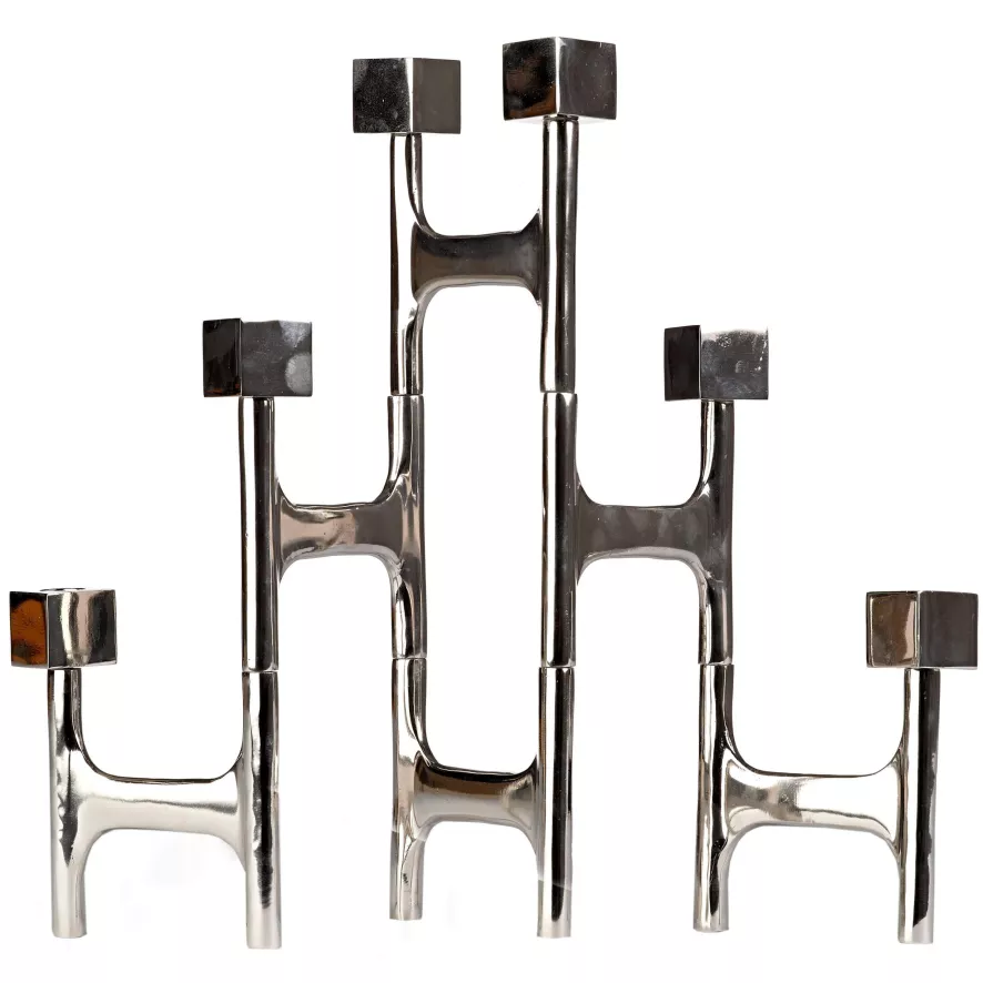De Folding kandelaar vierkant van Pols Potten is gemaakt van metaal en heeft een zilverkleurige, vernikkelde afwerking. De kandelaar heeft een lengte van 55 centimeter en een hoogte van 40 centimeter. De Folding kandelaar vierkant van Pols Potten heeft een gewicht van 1,95 kilogram.