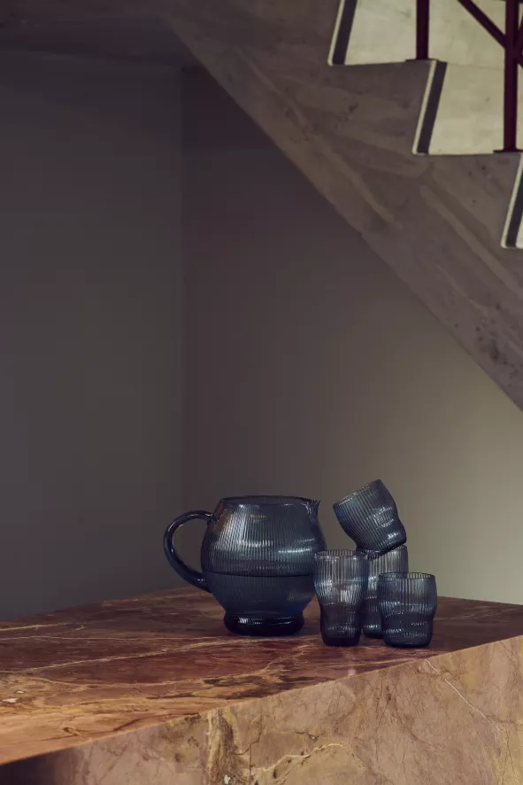 De Pum longdrink glas set van 2 van POLSPOTTEN bestaat uit geribbelde glazen met elk een diameter van 7,2 centimeter, een hoogte van 12 centimeter en een inhoud van 300 milliliter. De glazen zijn gemaakt van glas en zijn verkrijgbaar in verschillende kleuren. De glazen zijn vaatwasser bestendig en worden geleverd in een geschenkverpakking.