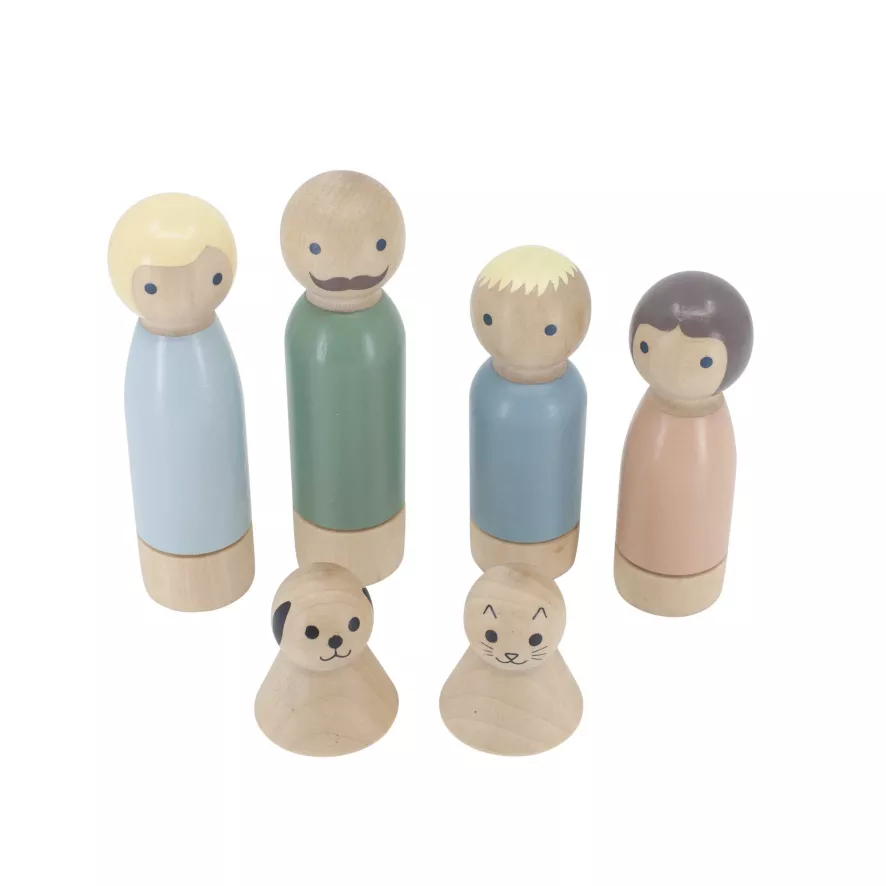 Zonder poppen is een poppenhuis slechts een huis. Daarom heeft het Deense merk Sebra de schattige Poppen voor The Sebra’s poppenhuis ontworpen, geleverd in een set van zes. De set is net een kleine familie, bestaande uit twee ouders, twee kindjes, een baby én een hond. Je kindje is hier gegarandeerd heerlijk lang zoet mee! De set is volledig gemaakt van multiplex, gekleurd met een niet giftige verf. De poppenkast en bijbehorende accessoires zijn geschikt voor kinderen vanaf 1 jaar. Sebra raadt aan het poppenhuis en de accessoires alleen te reinigen met een vochtige, zachte doek.