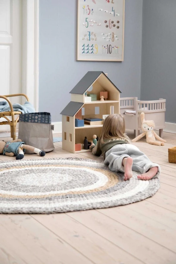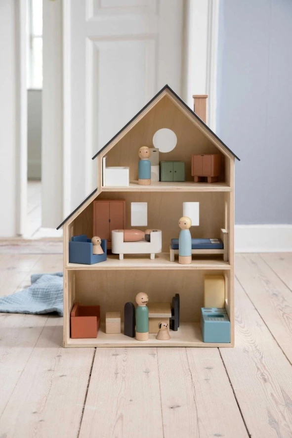 The Sebra’s poppenhuis van Sebra is 39 centimeter breed, 60,1 centimeter hoog en 22 centimeter diep. Het poppenhuis is gemaakt van multiplex en het dak is geschilderd in een donker paarsgrijze kleur. Je kan het poppenhuis schoonmaken door het af te vegen met een doek.