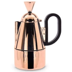 Deze koffiezetter is gemaakt van roestvrij staal met een koperkleurige finish. Hij heeft een dubbele wand en een breedte van 9.4 centimeter en een hoogte van 19.7 centimeter. Met de Brew Stove Top coffee maker van Tom Dixon kun je 4 kopjes espresso van 50 milliliter maken. Je kunt hem beter niet in de vaatwasmachine stoppen. Was hem liever af met een warm sopje en droog hem daarna goed af met een theedoek.