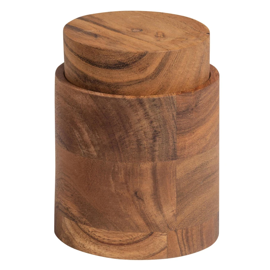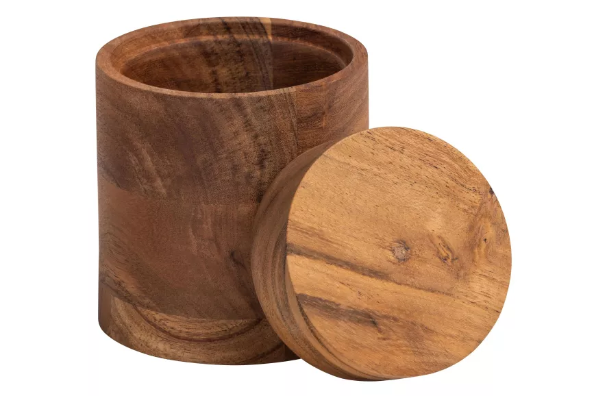 De Opal opberger small van WOOOD heeft een diameter van 9 centimeter en een hoogte van 12 centimeter. De inhoud heeft een diameter van 7 en een hoogte van 8 centimeter. De deksel heeft een diameter van 8 centimeter en een hoogte van 3 centimeter. De opbergpot is gemaakt van acaciahout en is eenvoudig schoon te maken met een droge, schone doek. Voor grondiger onderhoud kan de pot worden afgenomen met een lichtvochtige doek met lauwwarm water. Door de Opal opberger te behandelen met speciale meubelolie kun je de waterafstotende werking van het hout verbeteren.